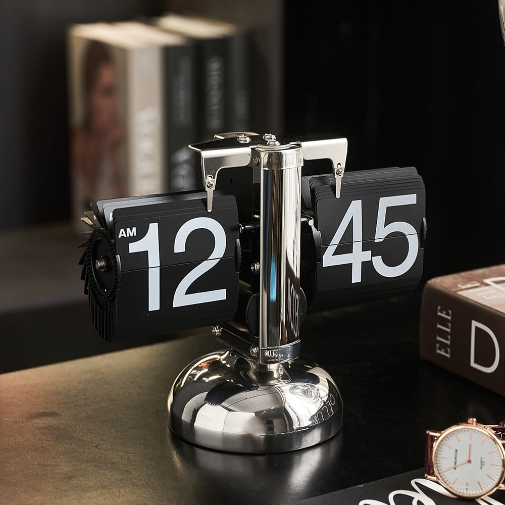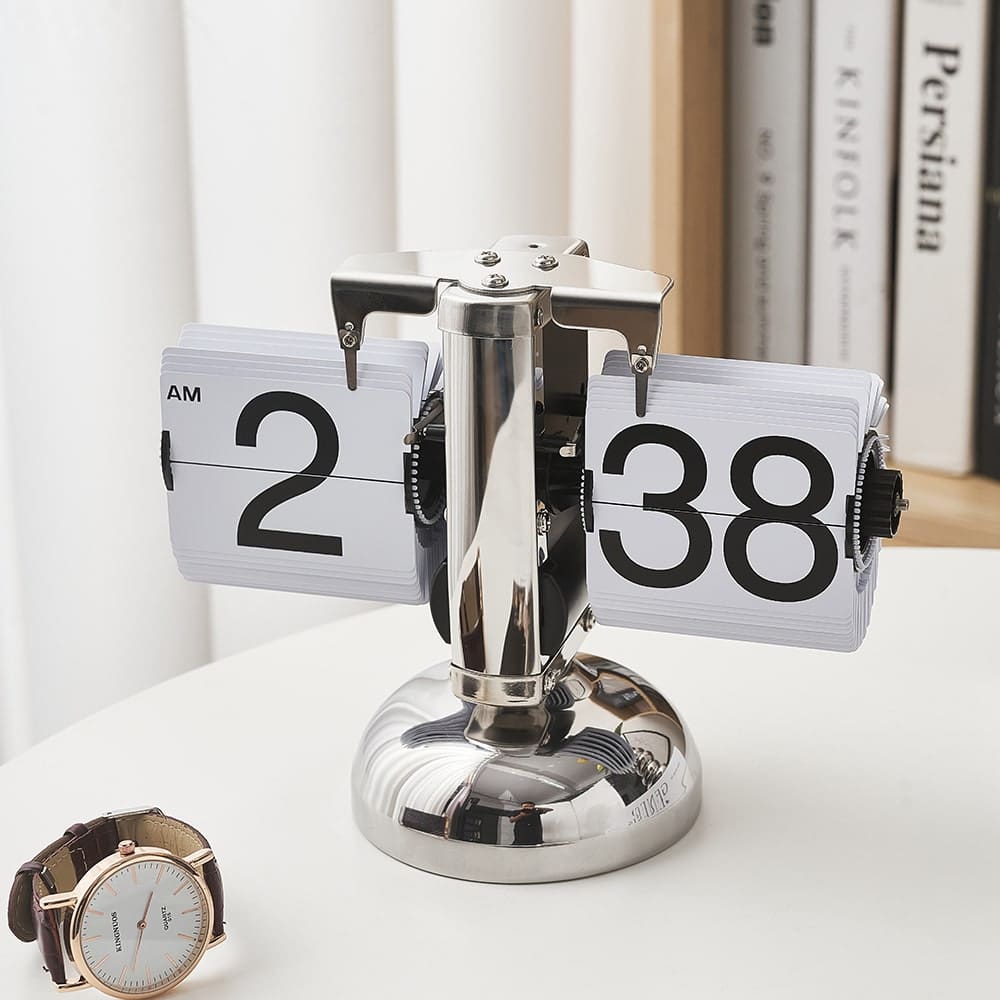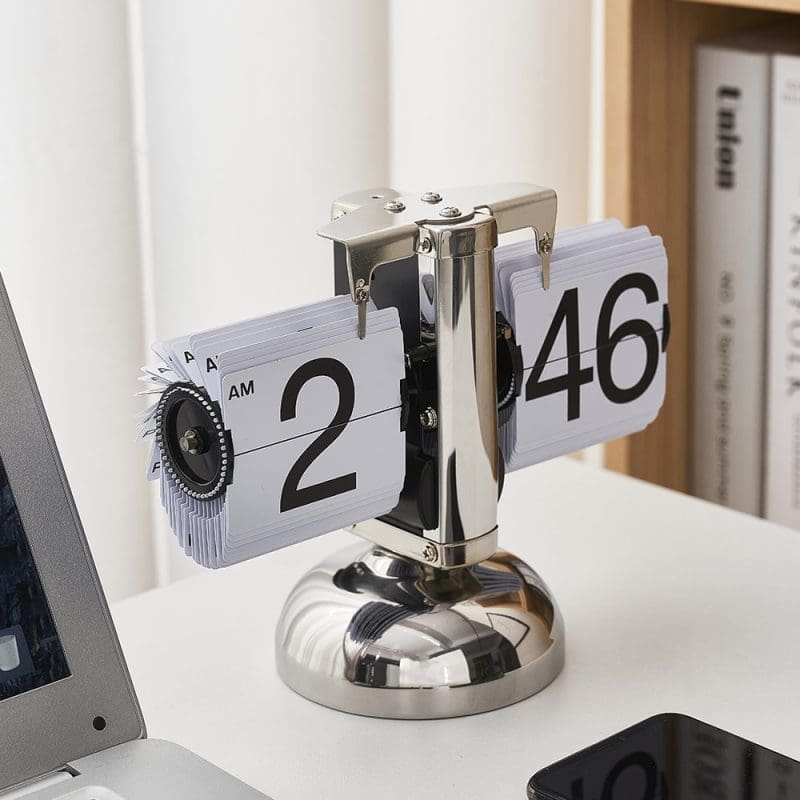 Horloge murale à quartz en acier inoxydable style rétro étiquettes défilantes