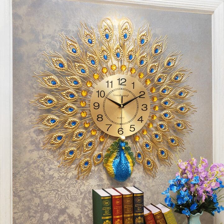 L’horloge murale contemporaine avec motif de paon est un véritable joyau pour votre intérieur. Son style élégant et unique met en avant la splendeur de la queue étincelante de ce magnifique oiseau. Cette horloge ajoutera une touche de raffinement à votre décoration tout en vous permettant de garder l’heure à portée de vue.
