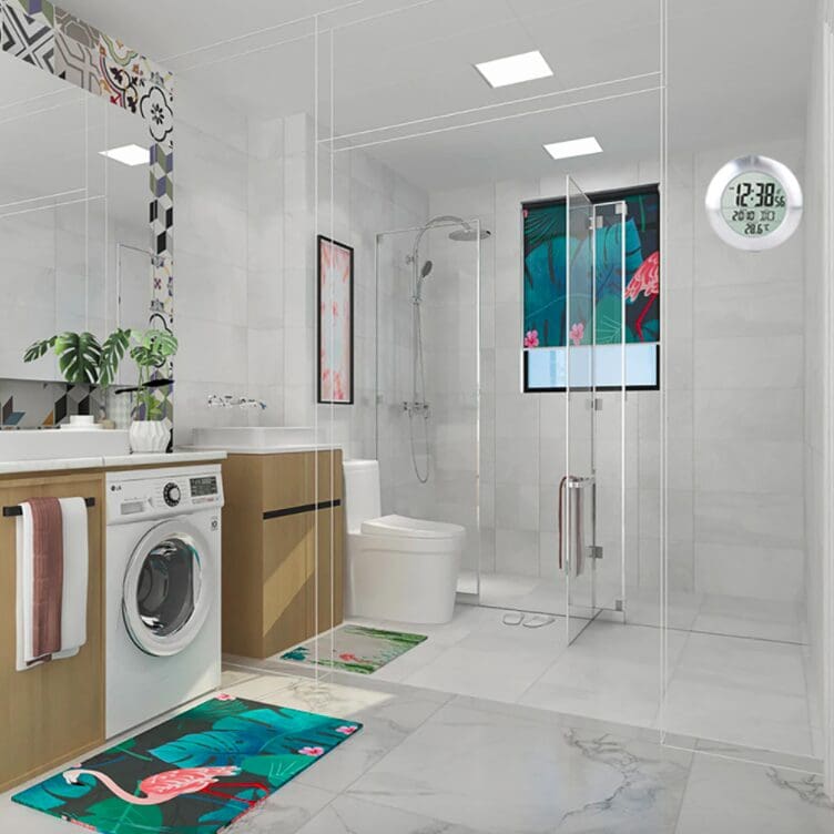 Découvrez notre horloge murale qui va révolutionner votre quotidien. Cet accessoire est étanche, ce qui vous permet de l’installer dans votre salle de bain, même dans votre douche. Un anneau en silicone assure l’étanchéité à l’arrière de l’horloge et son écran est résistant aux éclaboussures.