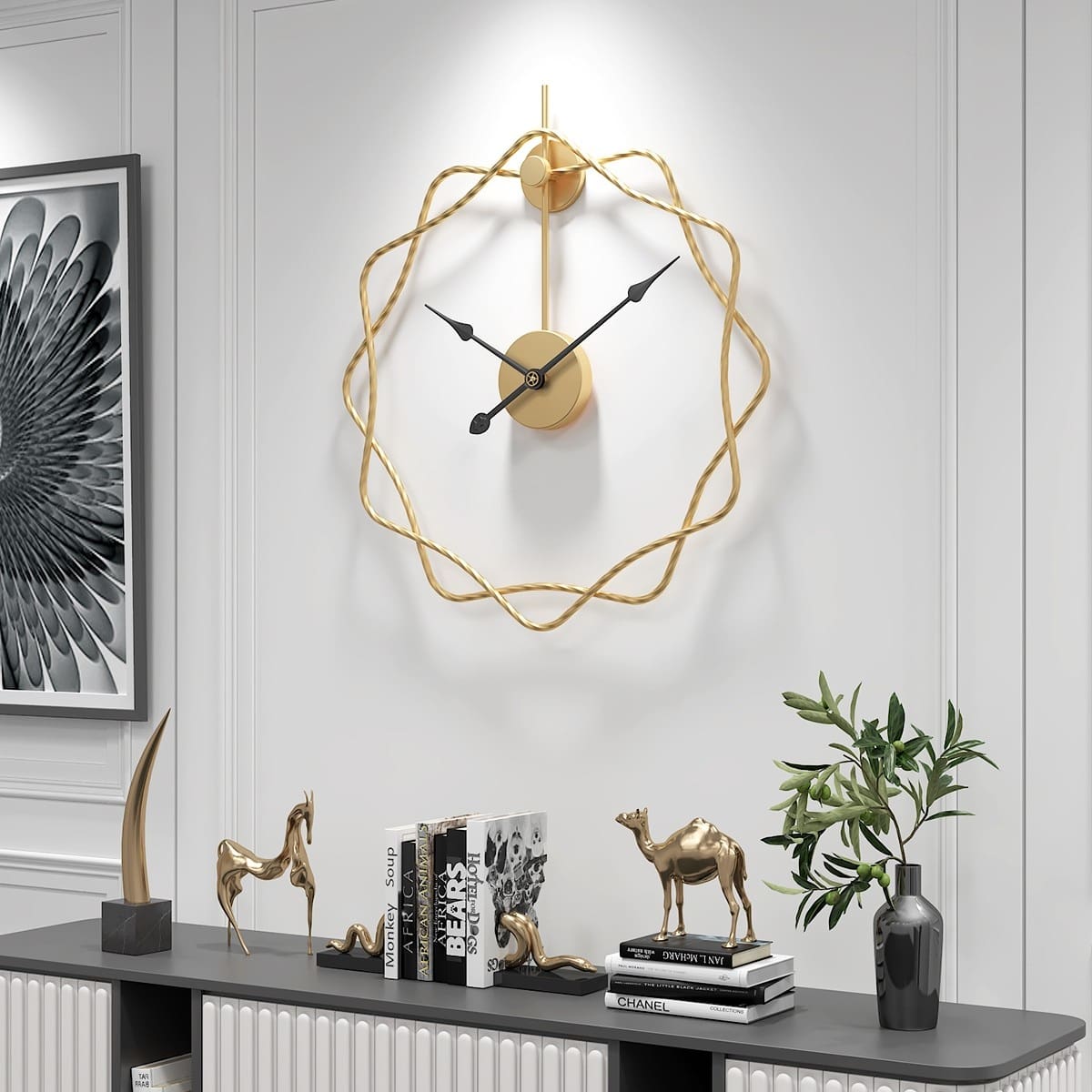 Étiquettes : Horloge murale design, Horloge murale dorée, Horloge murale noire, Horloge murale ronde, Horloge suspendue