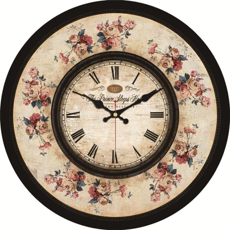 Horloge murale vintage en bois motifs à fleurs